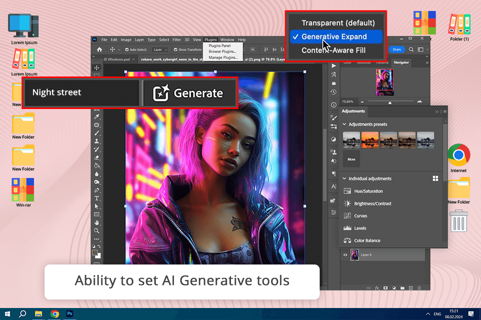 • Generative Fill & Backgrounds (Powered by Firefly Image 3 Model): Add/remove objects or generate realistic backgrounds via text prompts. Non-destructive and commercially safe—perfect for extending canvases or fixing imperfections in seconds.